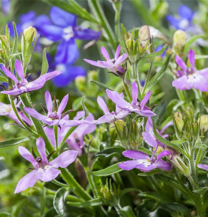 Das Männertreu (Lobelia erinus) ist eine beliebte Pflanze für den Balkon. Die unzähligen Blüten erscheinen, je nach Sorte, in verschiedenen Farben die ganze Saison hindurch. Ein sonniger bis halbschattiger Standort und ein durchlässiges Substrat werden bevorzugt.