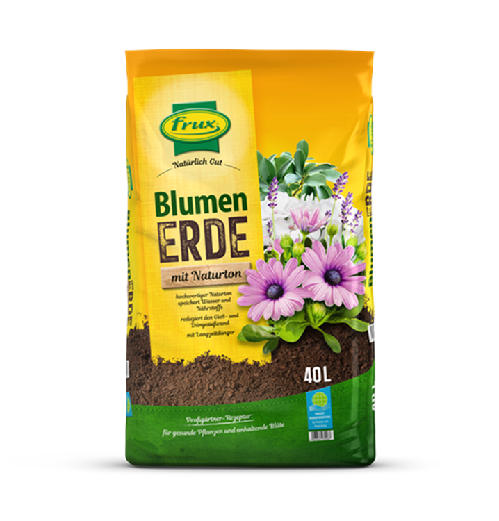Mit der frux Blumenerde mit Naturton steht dem Verbraucher eine hochwertige Einheitserde zur Verfügung, die sich schon jahrzehntelang im internationalen Erwerbsgartenbau bewährt hat. frux Blumenerde mit Naturton ist ein gebrauchsfertiges Kultursubstrat für alle Zimmer-, Terrassen- und Balkonpflanzen, mit Ausnahme von Orchideen und Moorbeetpflanzen. Für diese Kulturen empfehlen wir Ihnen unsere frux Spezialerden. Durch den hohen Anteil an Montmorillionit-Ton und die ausschließliche Verwendung von hochwertigen Torfersatzstoffen und Torf mit optimaler Struktur garantiert frux Blumenerde mit Naturton eine sehr gute Wasser- und Nährstoffspeicherung. Die Erde bleibt vergießfest und atmungsaktiv. frux Blumenerde mit Naturton enthält Vorratsdünger und alle für das Pflanzenwachstum notwendigen Nährstoffe. Eine Nachdüngung der Pflanzen ist daher erst nach ca. 6 Wochen notwendig.