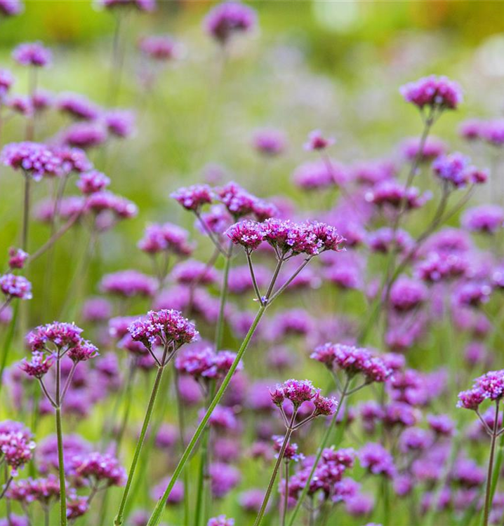 Das Eisenkraut (Verbena bonariensis) ist eine aufrechte wintergrüne Staude, die von Juli bis Oktober magentafarbene, in Dolden angeordnete Blüten bildet. An einem sonnigen Standort mit durchlässigem, nährstoffreichem Boden erreicht es gewöhnlich eine Höhe von ca. 1,5 m und wird ca. 40 cm breit.