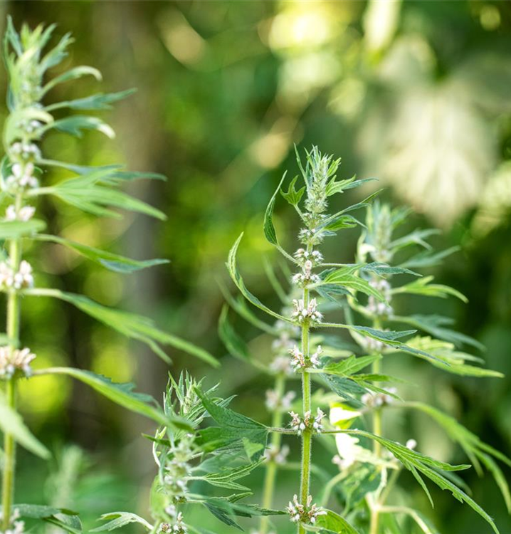 Leonurus cardiaca bildet in Rispen angeordnete, magentafarbene Blüten ab Juni.